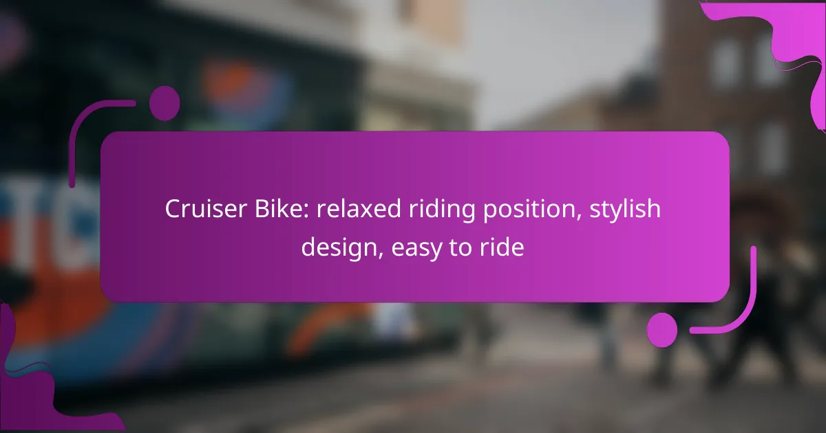 When selecting a cruiser bike, focus on features that enhance comfort, style, and ease of use. Key aspects include frame material, seat comfort, and gear options, all of which contribute to a relaxed riding experience.