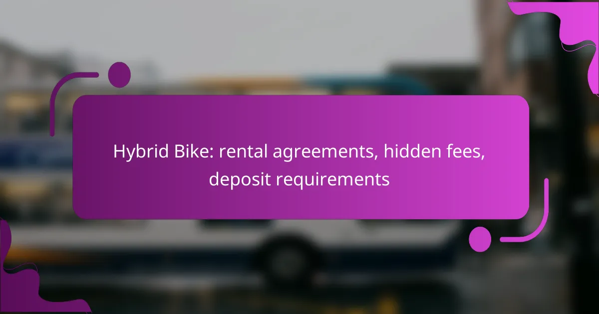 When renting a hybrid bike, it’s crucial to understand the rental agreements, which outline the duration, fees, and insurance requirements. Be vigilant about potential hidden fees that can arise, such as charges for late returns or damage, which may significantly increase your total cost. Additionally, most rental companies require a deposit that serves as a security measure, typically refundable if the bike is returned in good condition.