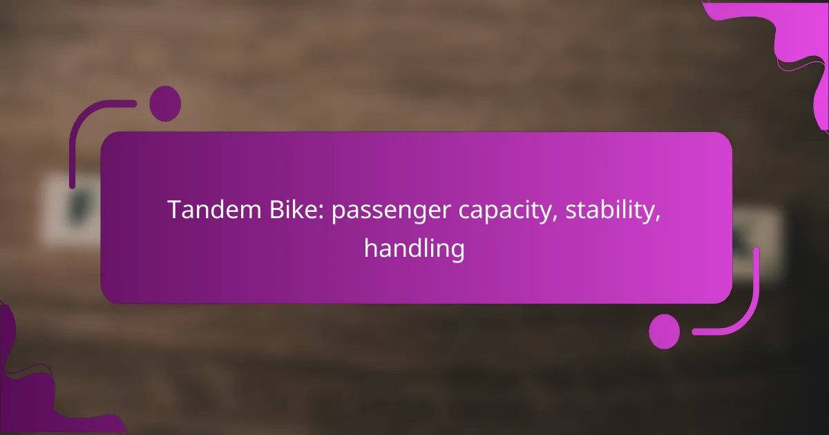 The stability of tandem bikes is influenced by several key factors, including rider weight distribution, frame geometry, and tire pressure. Proper weight distribution is crucial; if one rider is significantly heavier, it can lead to handling issues. Additionally, a well-designed frame with a lower center of gravity enhances stability.