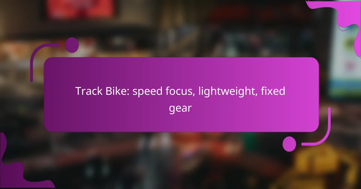 Track bikes designed for speed emphasize lightweight construction and fixed gear setups, making them perfect for both competitive racing and urban commuting. Models like the Cannondale CAAD12, Specialized Langster, and Fuji Track Pro cater to speed enthusiasts with their unique features and performance capabilities. Selecting the right bike involves considering frame materials and component weights, which are crucial for maximizing speed and efficiency.